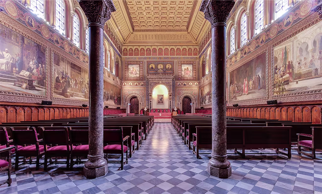 El Paraninfo, construido entre 1863 y 1873, es una joya arquitectónica. Sus techos altos, la decoración de época y su iluminación tenue lo convierten en el lugar perfecto para que una historia como esta cobre vida.
